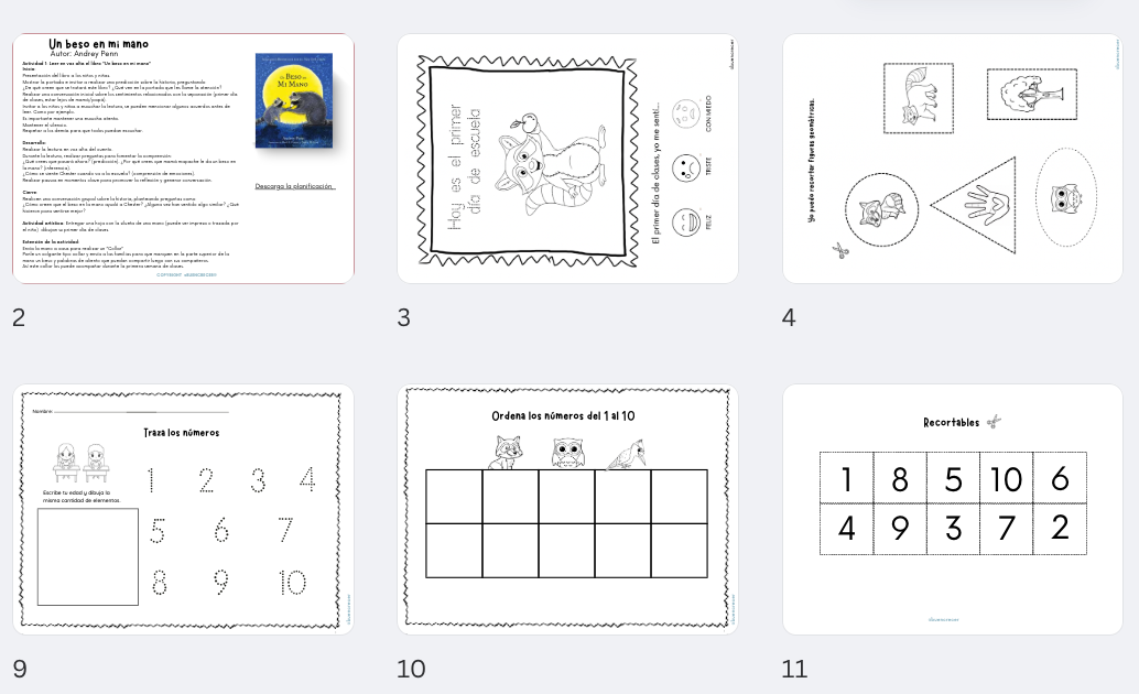 Material contiene planificación detallada de actividades educativas basada en el libro «Un beso en mi mano» de Audrey Penn.